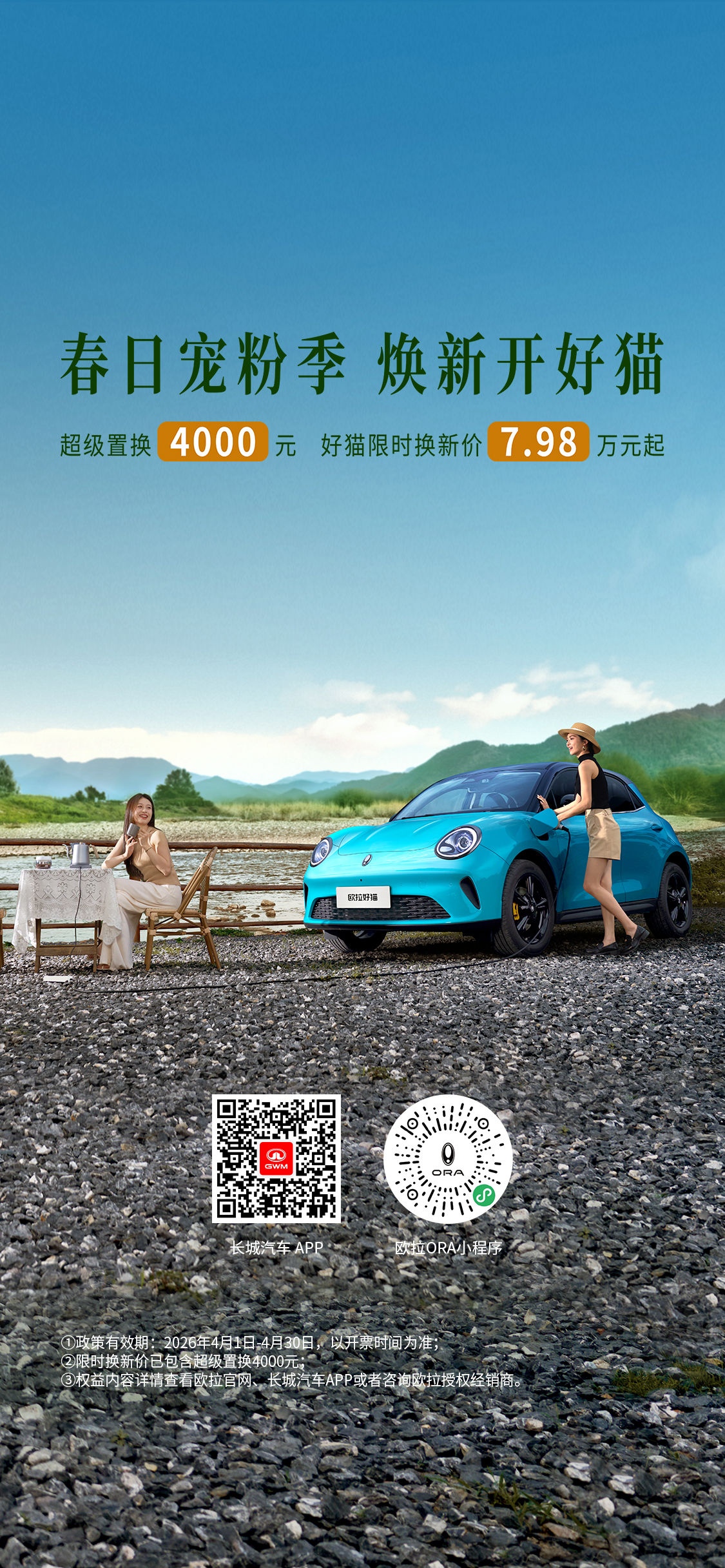 以上权益内容详情查看欧拉官网、长城汽车 APP或咨询欧拉授权经销商。若有任何疑问,可咨询客服热线400-666-1990。